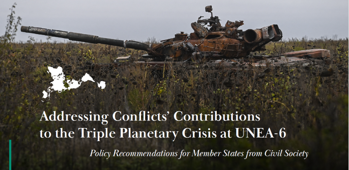ساعدت قرارات اتخذتها جمعية الأمم المتحدة للبيئة في الماضي بشأن حماية البيئة في المناطق المتأثرة بالنزاعات المسلحة والتلوث الناتج عن الصراعات على إعادة التأكيد مجدداً على ولاية برنامج الأمم المتحدة للبيئة ودور جمعية الأمم المتحدة للبيئة كمنتدى لمعالجة القضايا التي تؤثر على البيئة والسلام والأمن، في حين لا تزال النُهُج الحالية المتعددة الأطراف لإدارة العلاقة بين الصراعات المسلحة والأزمة الكوكبية الثلاثية مجزأة وقاصرة. بيد أنه يمكن للدورة السادسة لجمعية الأمم المتحدة للبيئة تحسين هذا الواقع من خلال تحفيز الجهود العالمية والإقليمية التي يبذلها المجتمع الدولي في سبيل تعزيز المساعدة البيئية والتعافي استجابة لمتطلبات الأزمة الكوكبية الثلاثية. وبالإضافة إلى ذلك، فإنَّ تركيز الدورة السادسة لجمعية الأمم المتحدة للبيئة على الاتفاقات البيئية المتعددة الأطراف يتيح فرصة جيدة لمناقشة كيفية مراعاة ظروف النزاعات وواقعها من قبل هذه الاتفاقات للتأكد من معالجة القضايا البيئية المرتبطة بالنزاع على نحو أكثر فعالية من خلال الآليات القائمة.