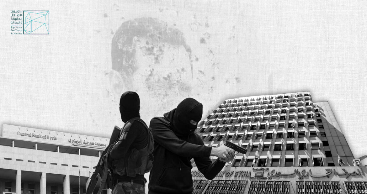 توثّق “سوريون من أجل الحقيقة والعدالة” في هذا التقرير الموجز، نهب وسرقة عدد من المؤسسات الحكومية من قبل جهات مسلّحة ومدنيين، منها مصرف سوريا المركزي، و الفرع الخامس للمصرف التجاري و المؤسسة العامة لمياه الشرب والصرف الصحّي والهيئة العامة للبحوث العلمية الزراعية، وجميعها تقع في العاصمة دمشق، إضافة إلى محطة توليد الكهرباء في القطيفة ومحطة دير الحجر في البحوث العملية الزراعية في ريف دمشق.