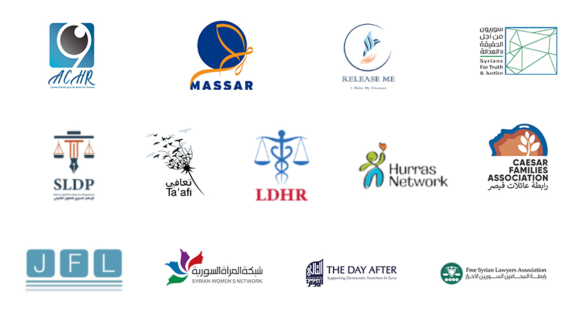 [2] المنظمات المساهمة هي: سوريون من أجل الحقيقة والعدالة، البرنامج السوري للتطوير القانوني، محامون وأطباء من أجل حقوق الإنسان، تحالف أسر الأشخاص المختطفين لدى تنظيم الدولة الإسلامية (مسار)، مشروع حماية، العدالة من أجل الحياة، مبادرة تعافي، شبكة المرأة السورية (شمس)، شبكة حراس الطفولة، رابطة عائلات قيصر، اليوم التالي، رابطة المحامين السوريين الأحرار، مركز وصول لحقوق الإنسان.