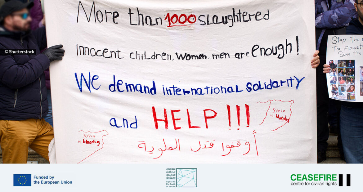 تم إنجاز هذا العمل بدعم من الاتحاد الأوروبي وبالشراكة مع “مركز سيسفاير لحقوق المدنيين/ Ceasefire centre for civilian rights” . إن محتويات هذا المنشور هي مسؤولية “سوريون من أجل الحقيقة والعدالة” فقط/الجهة الناشرة، ولا تعكس بالضرورة آراء “الاتحاد الأوروبي” وآراء “مركز سيسفاير لحقوق المدنيين/ Ceasefire centre for civilian rights”.