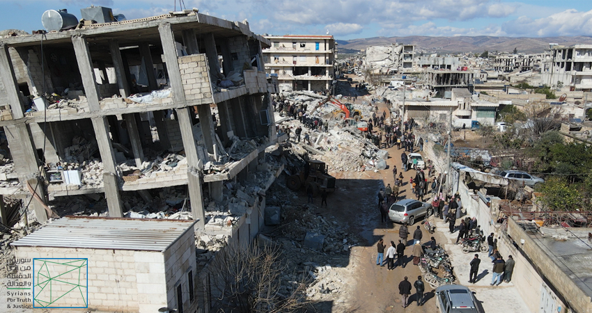 استجابة لكارثة الزلزال المدمّر الذي ضرب تركيا وسوريا يوم 6 شباط/فبراير 2023، ونظراً لبدء عمليات الإبلاغ عن انتهاكات مرافقة لعمليات الإنقاذ وإيصال المساعدات الإنسانية ولاحقاً توزيعها، تنشر “سوريون من أجل الحقيقة والعدالة” هذه الورقة المختصرة للحديث عن تلك الخروقات المحتملة على شكل أسئلة وأجوبة، وما يجب التركيز عليه عند توثيقها، مع التخصيص على مسؤوليات أطراف النزاع والمنظمات الإنسانية المنخرطة بعمليات الإغاثة.