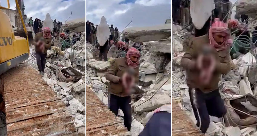 بتاريخ 6 شباط/فبراير 2023، أي في اليوم الذي وقع فيه زلزال سوريا وتركيا، انتشر مقطع فيديو على وسائل التواصل الاجتماعي لطفلة حديثة الولادة، تم انتشالها أثناء عمليات الانقاذ في مدينة جنديرس/جندريسه بمنطقة عفرين في شمال غرب سوريا.