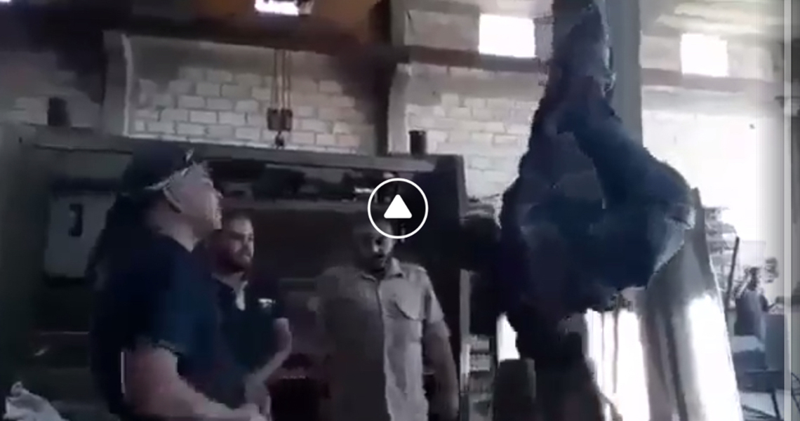 ويُظهر المقطع المصور – الذي مدته ثلاث دقائق- الذي تداوله ناشطون، الرجال الثلاثة مع عمال في الورشة ملتفين حول الطفل المعلق من قدميه ويقوم أحدهم يضربه بسوط مع التوجه بكلمات نابية وشتائم للطفل، كما يظهر أحد الرجال في المقطع مبتسماً وهو يتحدث مع الطفل المعلق.