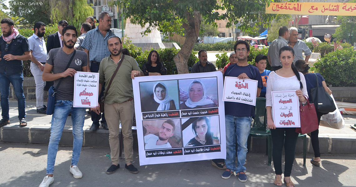 تنظيم "داعش" يُعدم إحدى مختطفات السويداء ويهدّد بإعدام جميع المخطوفين إن لم تنفّذ مطالبه، سوريون من أجل الحقيقة والعدالة بتاريخ 5 تشرين الأول/أكتوبر 2018، آخر زيارة بتاريخ 9 تشرين الأول/أكتوبر 2018، https://www.stj-sy.org/ar/view/829.