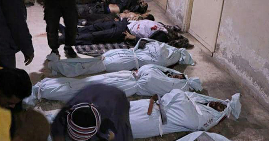 At least 20 civilians were killed and up to 80 others injured, following the shell on a popular market that was crowded with civilians in Mesraba village[1], Damascus countryside on November 26, 2017. According to many village residents and eyewitnesses, warplanes, likely to be affiliated to Syrian regular forces, attacked the village's market with four high-explosive rockets, which resulted in many deaths among civilians, including women and children.