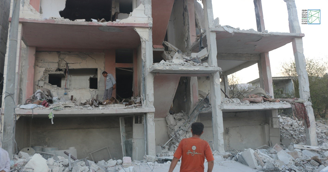 Walaa Saeed Taha and her daughter, Lama Saeed were killed in an aerial bombardment on the Muhambal town in Idlib western countryside, after bombing their house with high-explosive rockets at 1:00 pm on the same day, despite the civil defense’ efforts for more than half an hour to rescue them from the rubble, according to STJ field researcher.