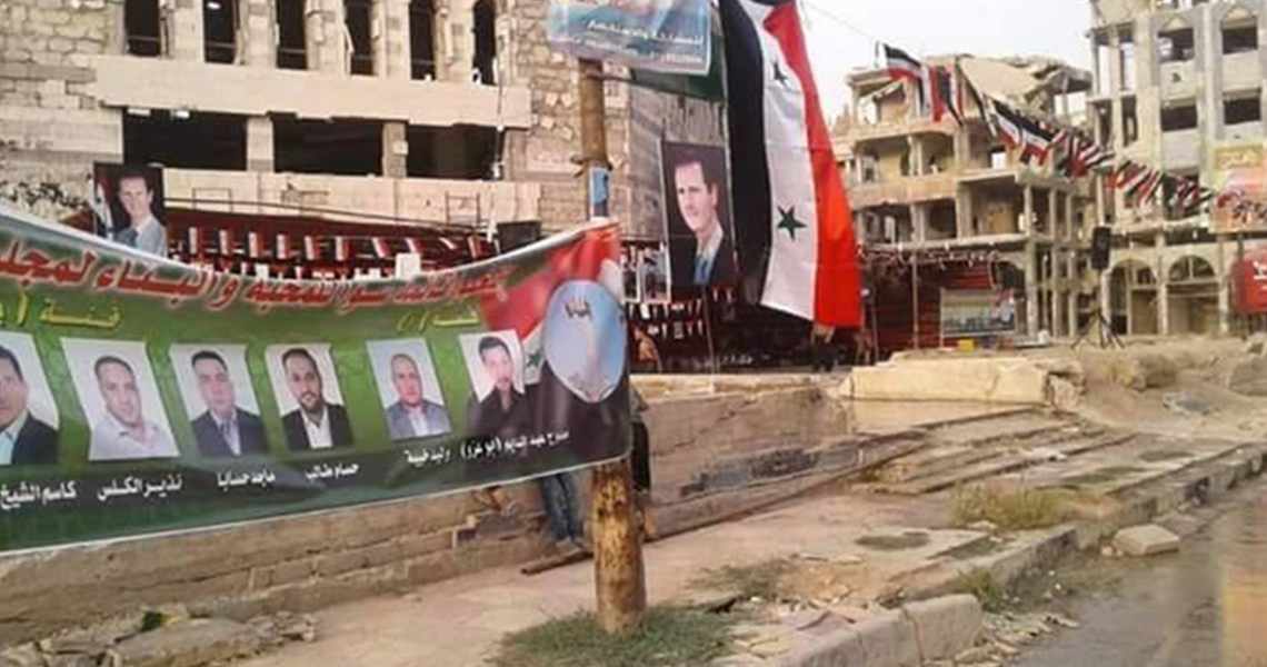 local sources in Al Moadamyeh town, Damascus suburbs, reported that it was a pro forma holding of local elections by the Syrian government, as only members of the Ba’ath ruling Party were allowed to run for local administration, citing that Mohamed Ibrahim al-Wawi, who won a seat in the local council is known for his cooperation with the Syrian air intelligence.