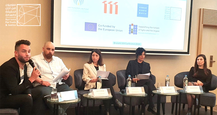The event was jointly organized by Syrians for Truth and Justice (STJ), Human Rights Watch (HRW), the Syrian Center for Media and Freedom of Expression (SCM), and the Belgian organization 11.11.11.
