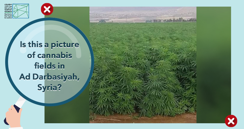 On 17 June 2022, a Syrian Twitter account posted an image of land planted with cannabis (hashish). The image was attached with a caption saying that the land shown is located in Ad Darbasiyah town of al-Hasakah province, controlled by the Autonomous Administration and the Syrian Democratic Forces (SDF).